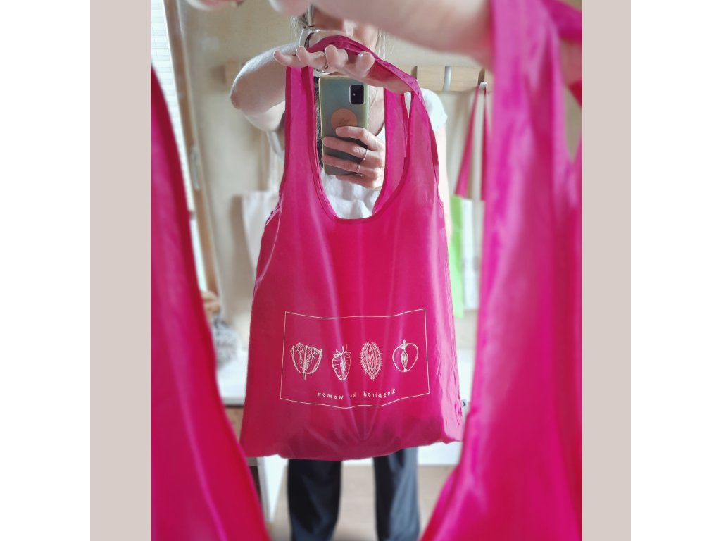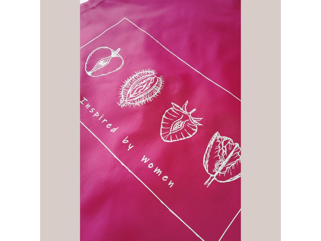 Lehká fuchsiově růžová taška s potiskem v barvě slonové kosti - jemný design květin a plodů inspirovaný krásou ženy