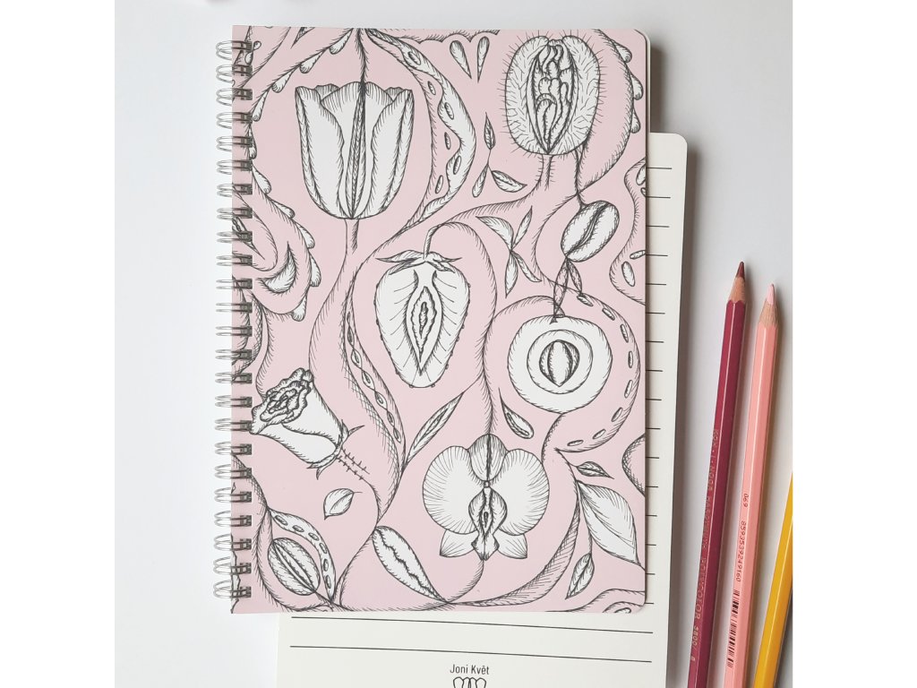 - Součástí zápisníku je podložka s logem JoniKvět s rozptylem řádek 1 cm